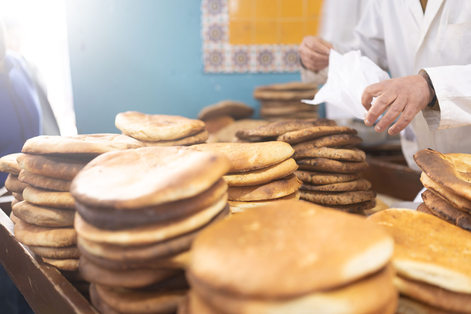 リヤカーに山積みのパンを載せて売り歩く人もいる。